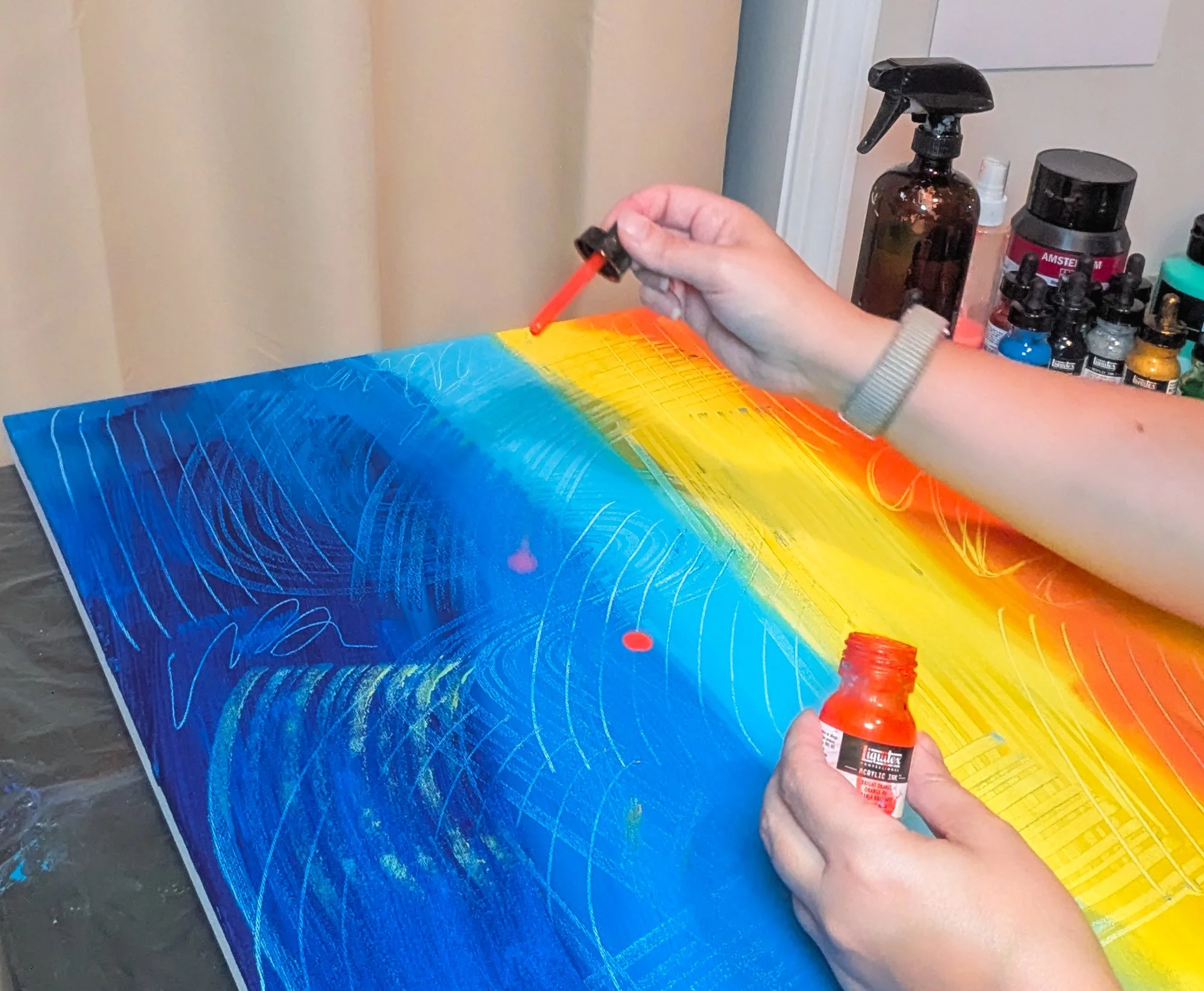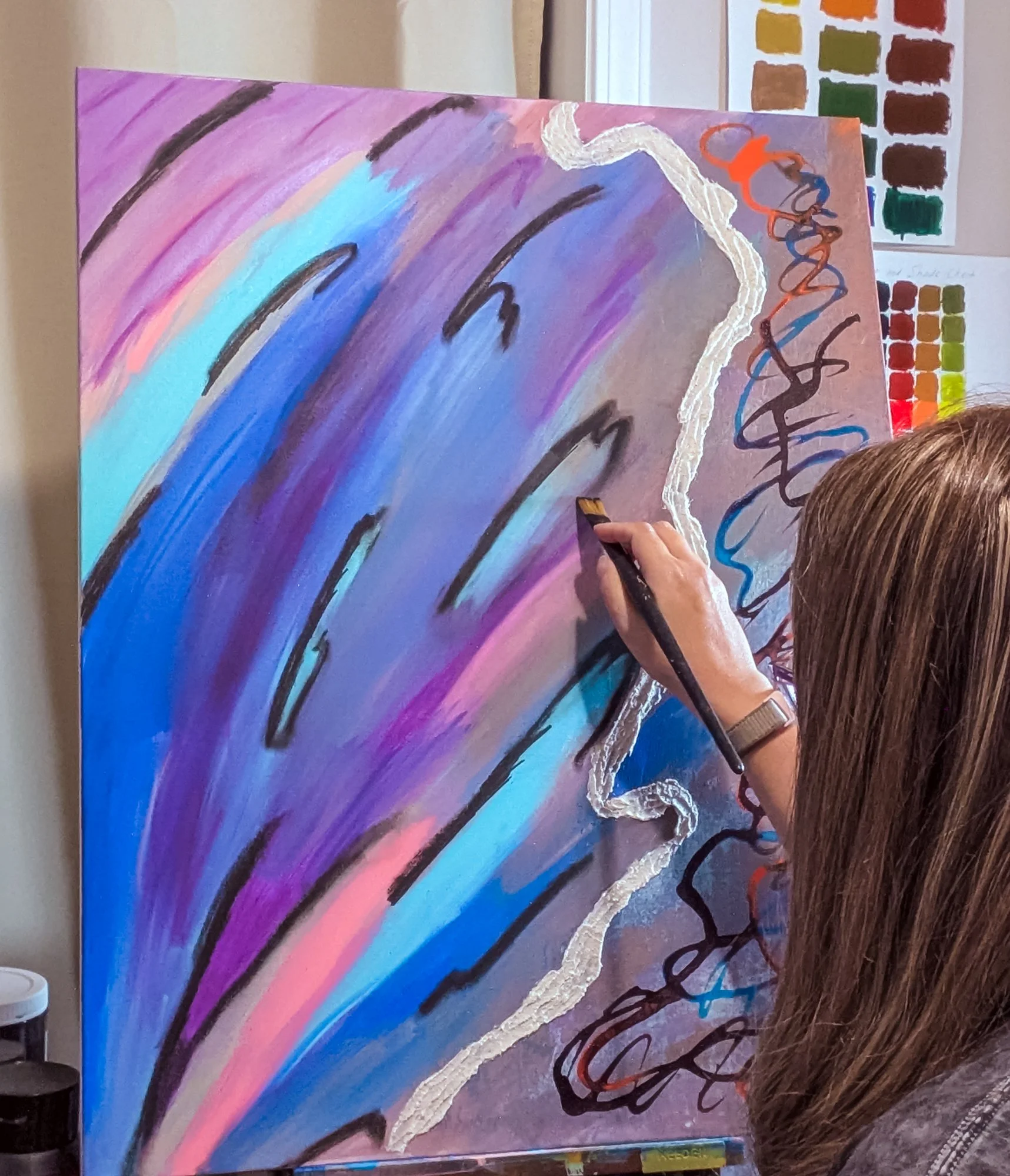 My paintings explore the quiet balance between chaos and calm. Through flowing brushstrokes, layered textures, and moments of movement, I create work that reflects the way life unfolds—messy, unpredictable, yet always moving forward.